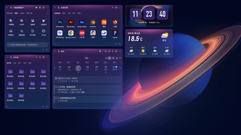 • 桌面組件自由搭配,重要事項一目了然
